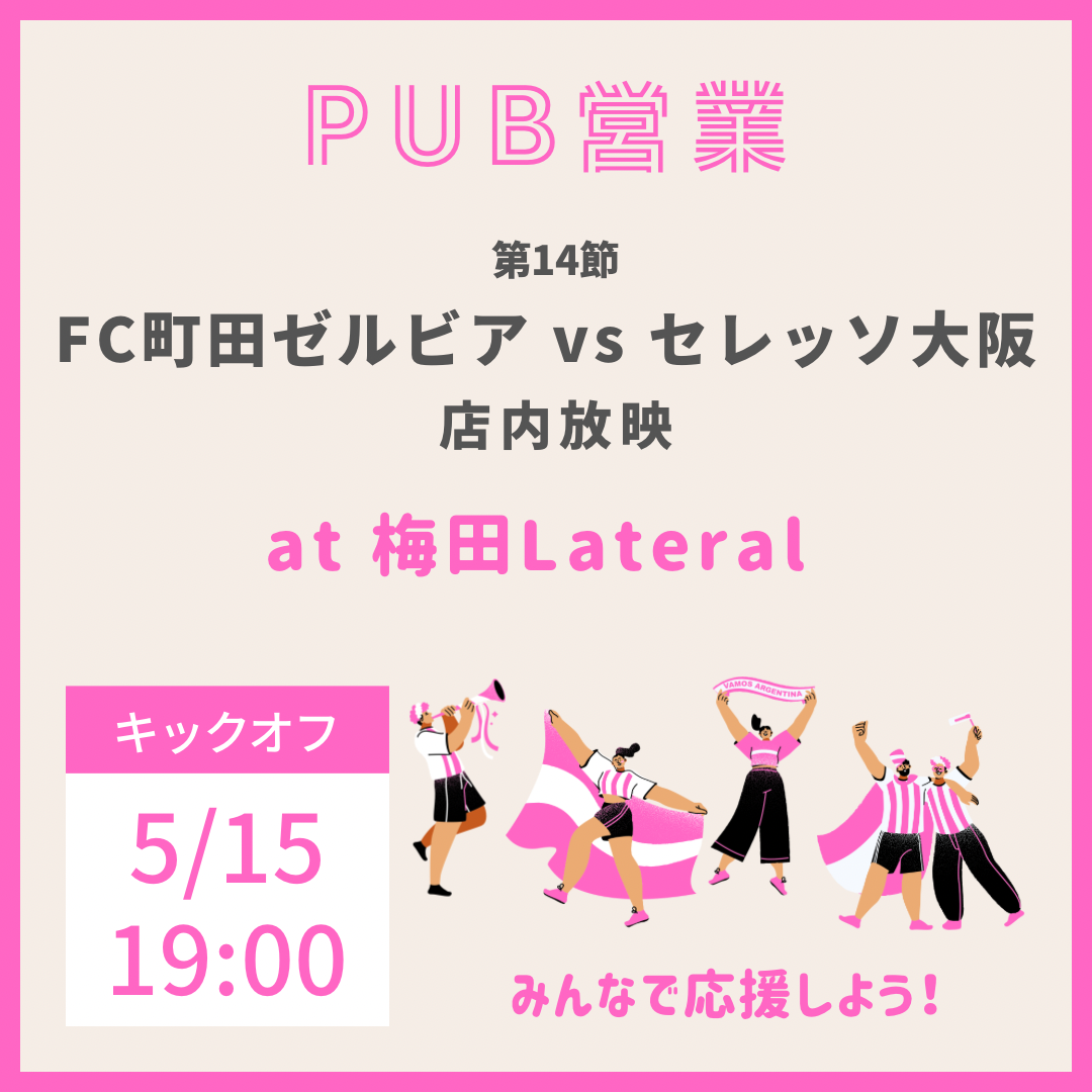 ※中止※【パブ営業】第14節「FC町田ゼルビア vs セレッソ大阪」店内放映!
